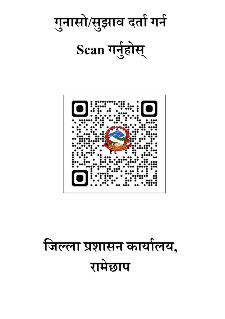 रामेछापका सबै सरकारी कार्यालयमा सेवाग्राहीले क्यूआर काेण मार्फत गुनासाे गर्न सक्ने
