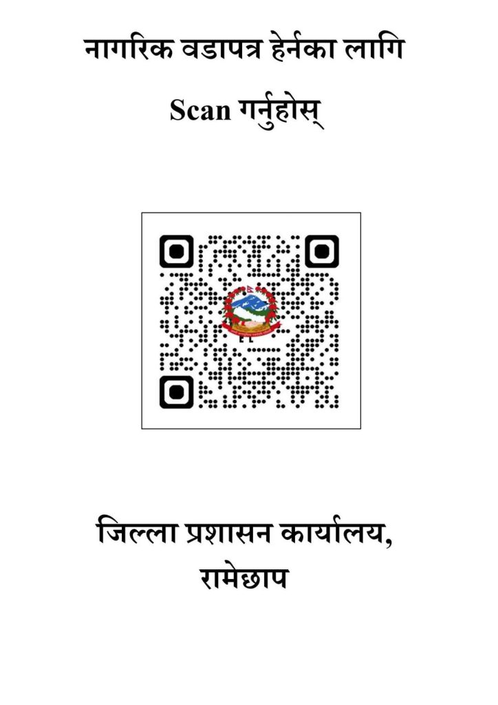प्रशासनले २ वटा क्यूआर काेण सार्वजनिक गरेकाे छ । जस मध्ये एउटमा कार्यालयले प्रवाह गर्ने सेवा प्रवाहका विषयमा वडापत्र हेर्न सकिने छ भने अर्काे क्यूआरमा भने गुनासाे गर्न सकिने छ ।