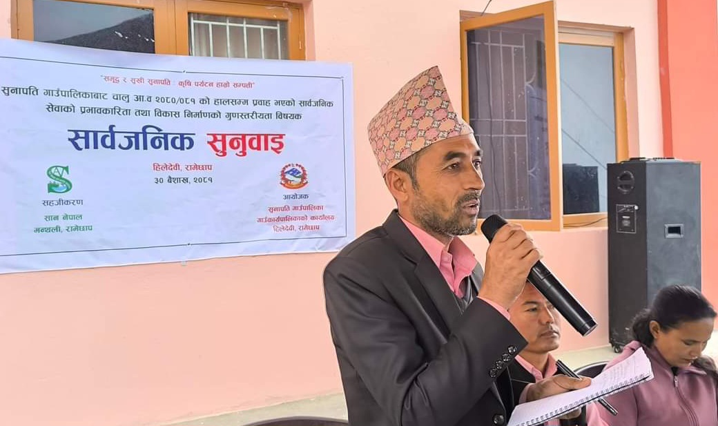 रामेछाप – भाैतिक प्रगतिमा सुनापति गाउपालिका वडा नम्बर १ काे अन्य वडाहरु भन्दा अगाडि देखिएकने छ । उक्त वडाकाे चैत्रमसान्तसम्म भाैतिक प्रगति ८१.७९ प्रतिशत रहेकाे छ ।