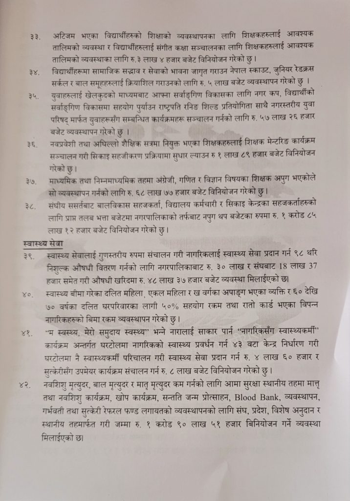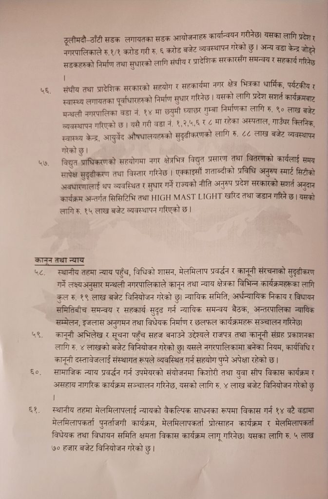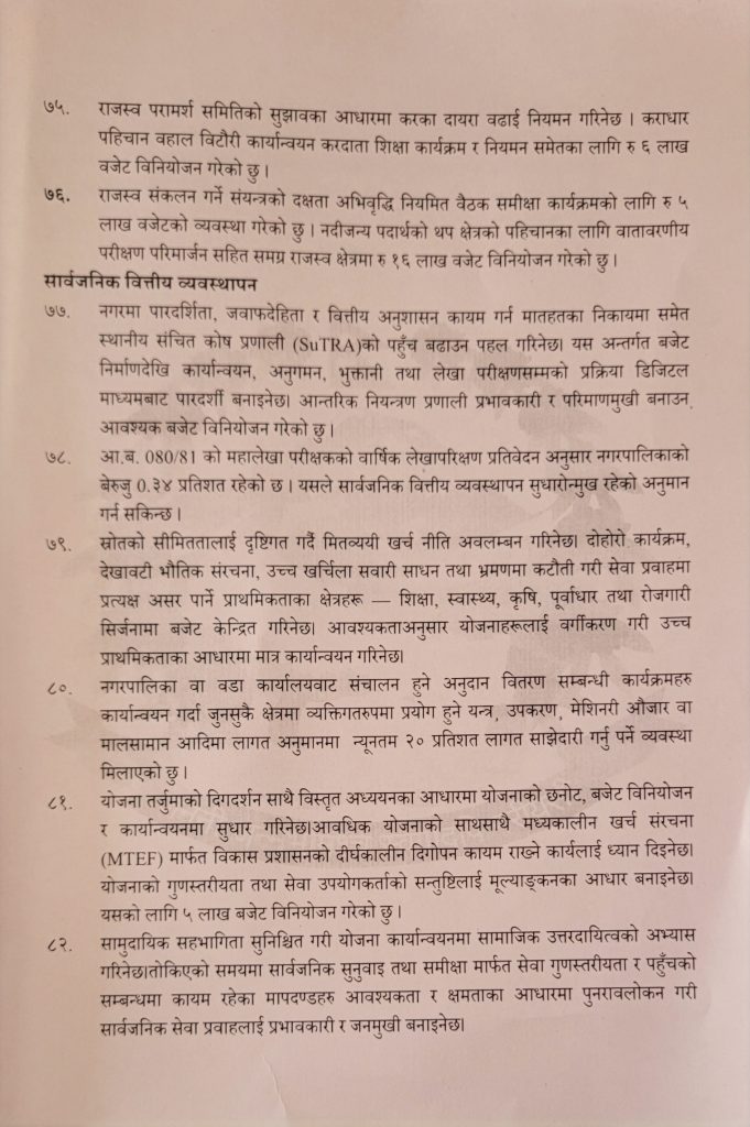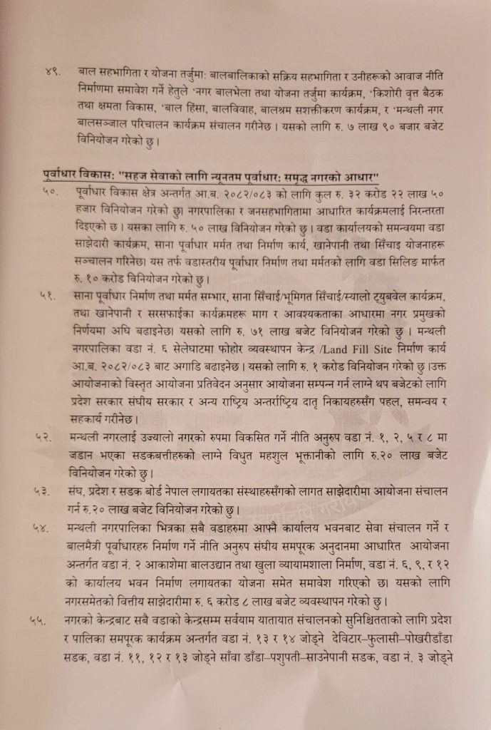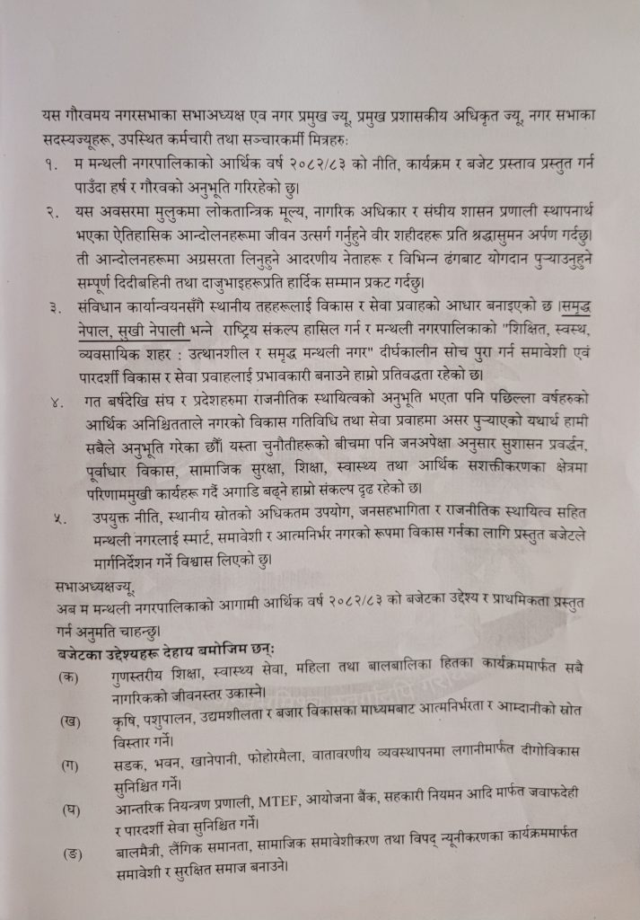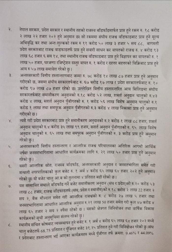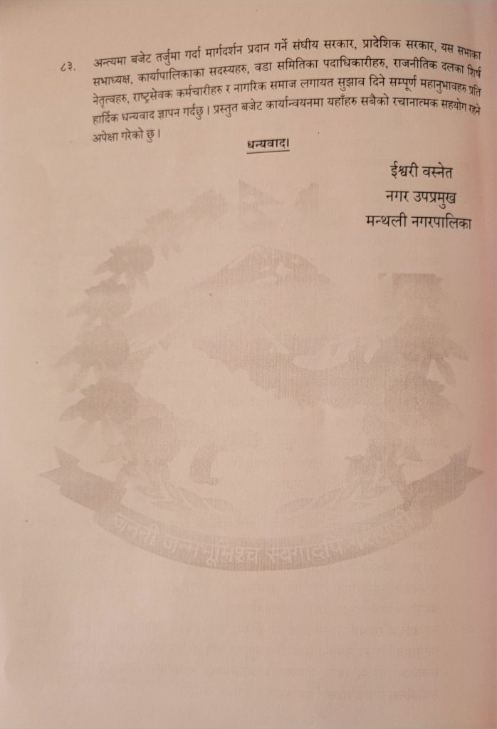 मन्थली नगरपालिकाकाे आ:व २०८२-८३ काे कुल बजेट १ अर्ब, ४ कराेड ६५ लाख ६४ हजार