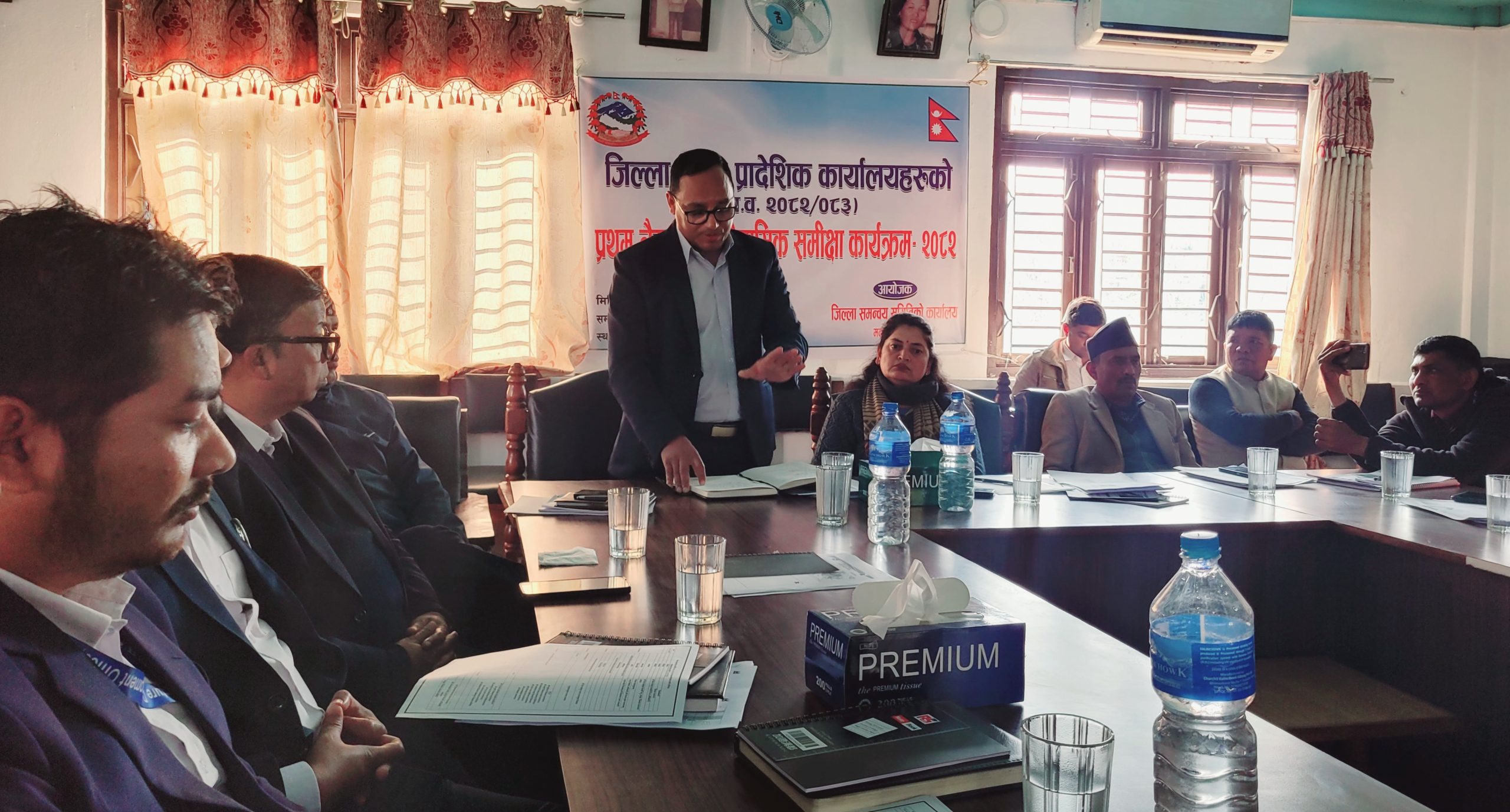 समीक्षा कार्यक्रममा जिल्ला स्थित प्रादेशिक १४ कार्यालय मध्ये १२ वटाले प्रतिवेदन प्रस्तुत गरेका थिए भने भु तथा जलाधार संरक्षण कार्यालय र यातायात व्यवस्था कार्यालयले प्रतिवेदन प्रस्तुत गर्न नआएकाे आयाेजकले जानकारी दिए ।